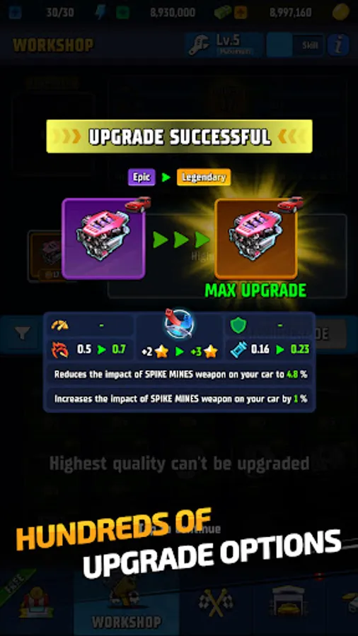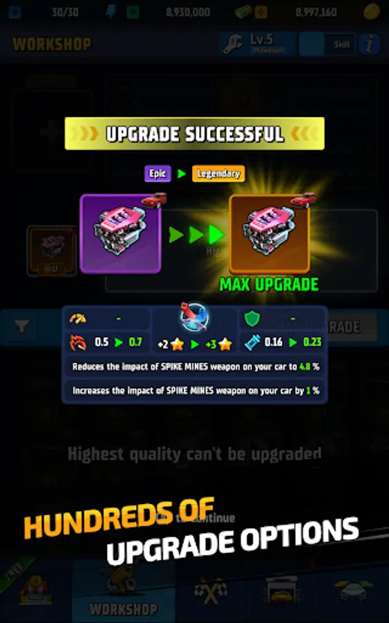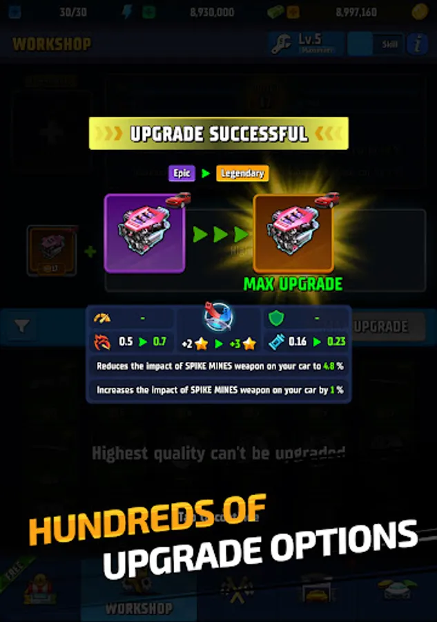 - Rich car customization and upgrades
