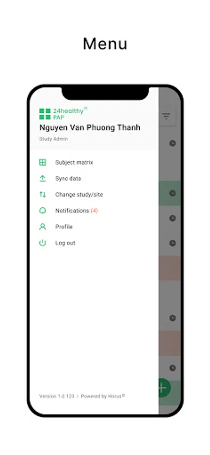 + A study is built on 24healthy Server. All users are created in this step. We do not allow open registration.