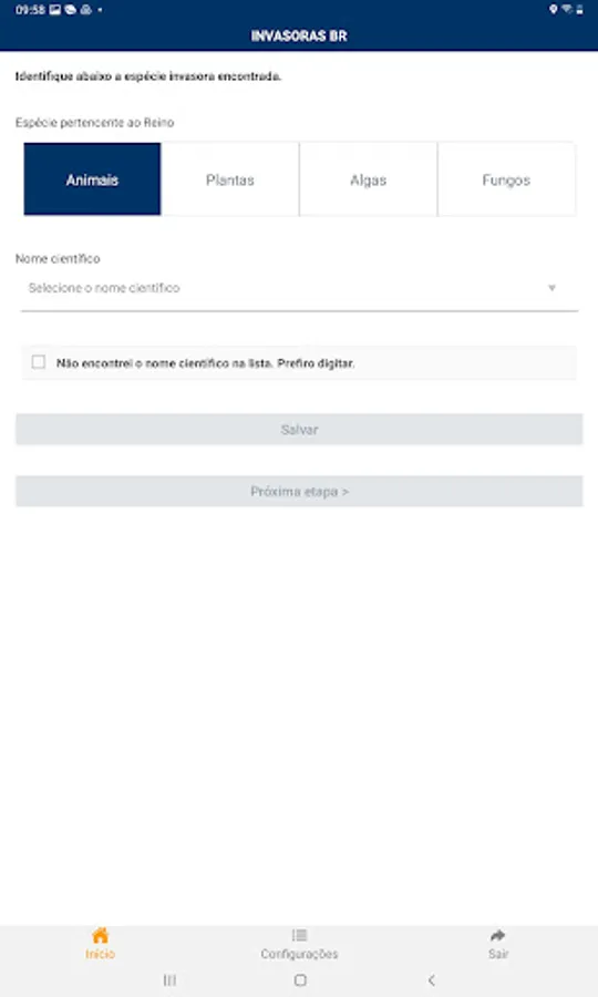 Invasoras BR is an application designed to record occurrences of invasive alien species and send them to the National Database of Invasive Alien Species, which exists since 2005.