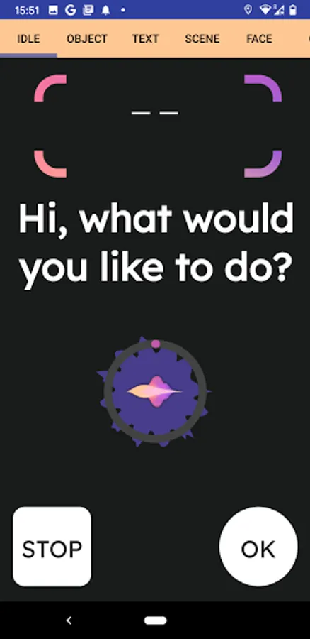 The app can be controlled with voice, you can use your own language to activate modes. For example, the user can say "What's written here?" or "Read the text" and the appropriate mode will be activated.