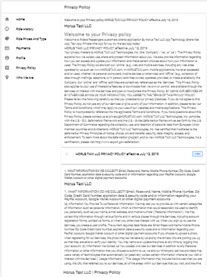 Riders Passengers customers clients application By Horus Taxi LLC