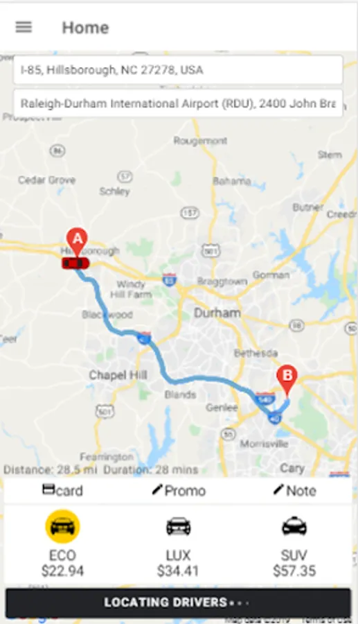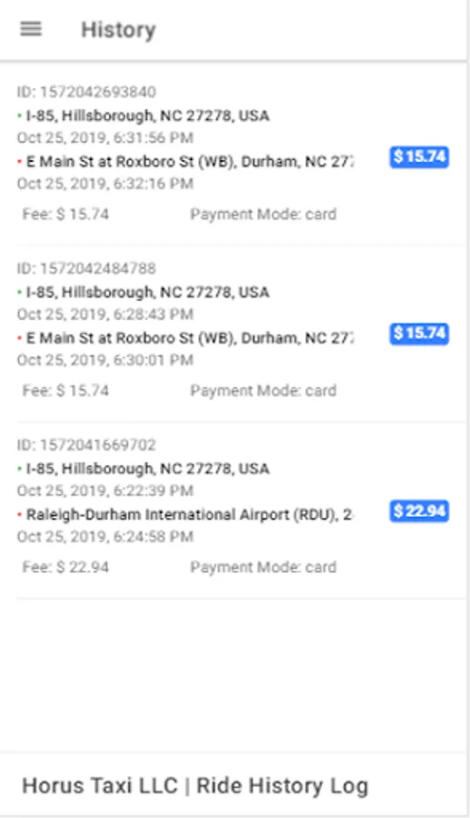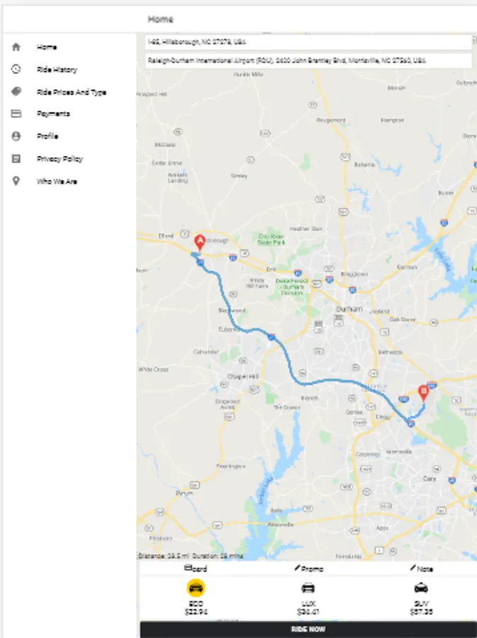 Riders Passengers customers clients application By Horus Taxi LLC’s transportation service is available 24/7 in major cities around Durham Chapel Hill such as # and many more. Visit horustaxi.com to see if we operate in your city.