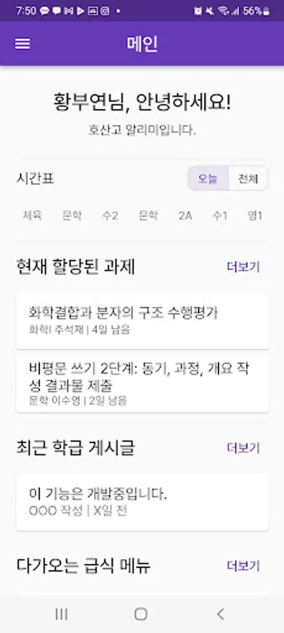 Convenient academic management, task management by subject, automatic task schedule and meal information, Hosan High School is in my hands!