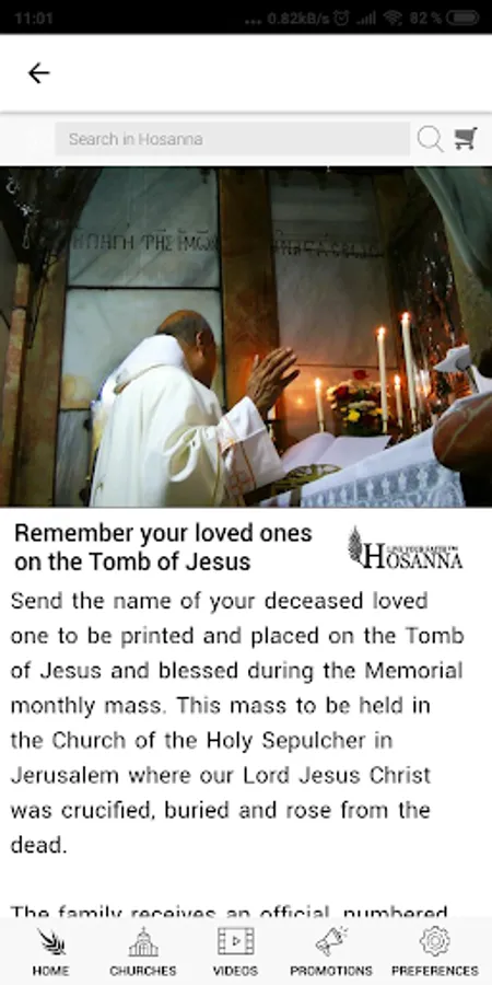 HOSANNA begins as a collaboration with the principal shrines located in the Holy Land including the Church of the Holy Sepulcher in Jerusalem where our Lord Jesus Christ was crucified, buried and rose from the dead; and the Basilica of the Nativity in Bethlehem where our Lord Jesus Christ was born to the blessed virgin Mary. As time progresses, the application will expand to include new shrines in the Holy Land and throughout the world.