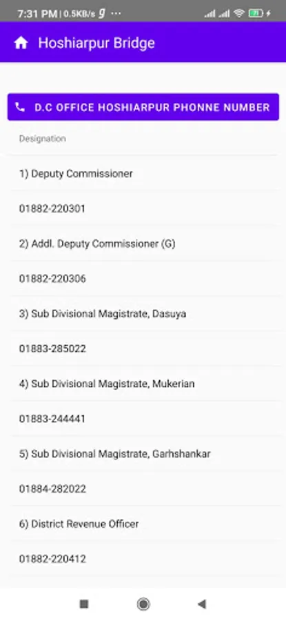 This application provides essential list contact numbers, emails, utility website for the citizen of District Hoshiarpur (Dasuya, Mukerian, Garhshankar)