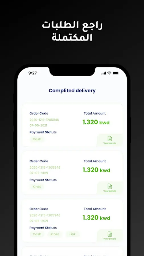 اوردركو: هو تطبيق يساعد السائق على توصيل الطلبات من مكان الى اخر بكل سهولة ويسر ، كما يساعد على تنظيم عمليات الاستلام للمبالغ بكافة طرق الدفع المتاحة ،