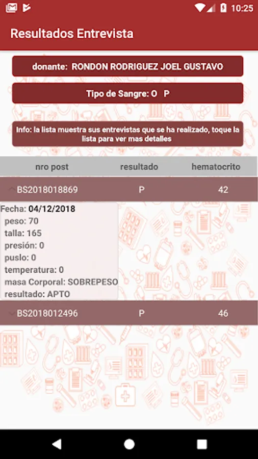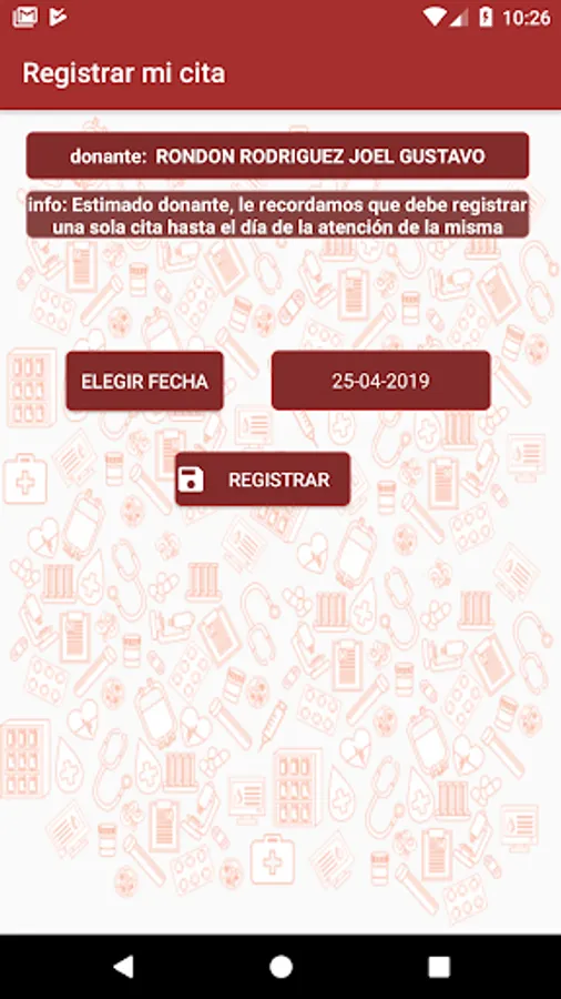 Through this app you can separate an appointment and contact personally with the responsible for the donation, in which the process of attention will be faster; You can also view your results in detail.