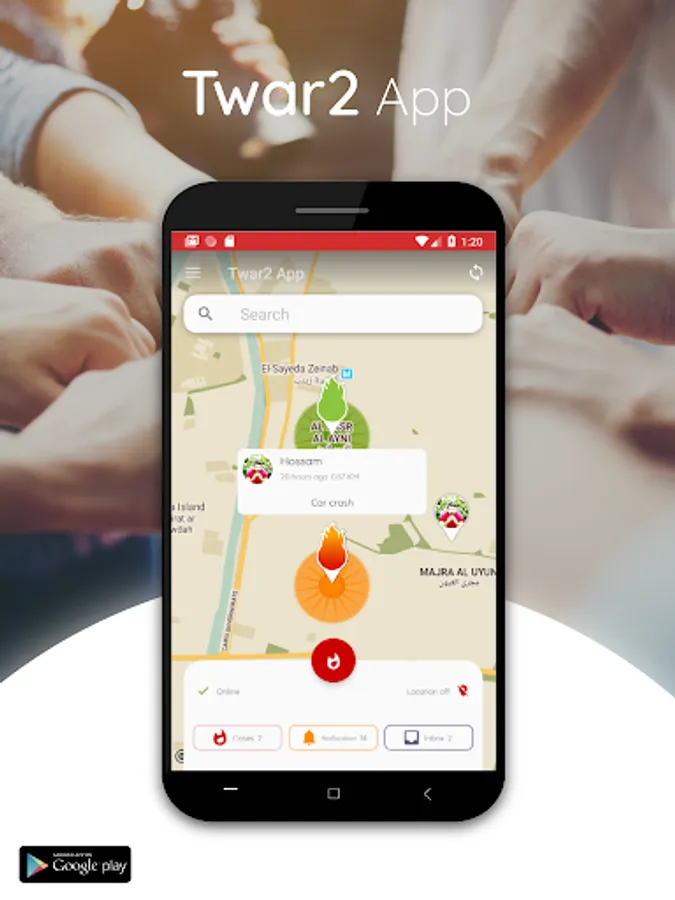 Twar2 app is social app , that allows users in the case of the need for assistance to publish their case with description , images and location of the case to make all users in the range of the case know , that there is someone who needs to their help .