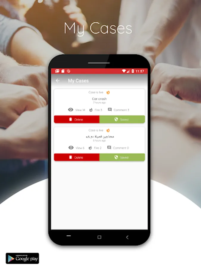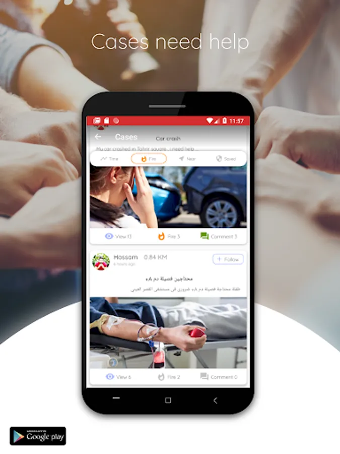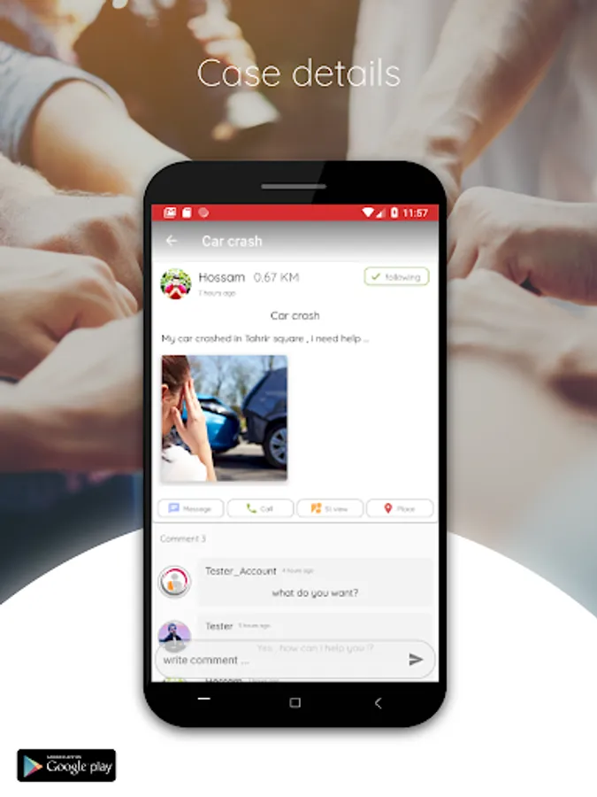 Users can do commentary on the case and communicate by sending message or call the owner of the case, as well as can see real images to location of the case by StreetView and can also react on the case "it's like reaction on Facebook " to make the case more important to the other users , so that the application is more effective .