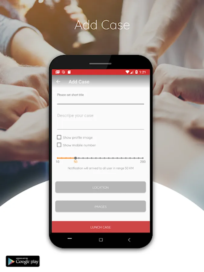 By launching the case , Twar2 app will push notification to all users in case range , which user has specified in advance, with the details of the case .