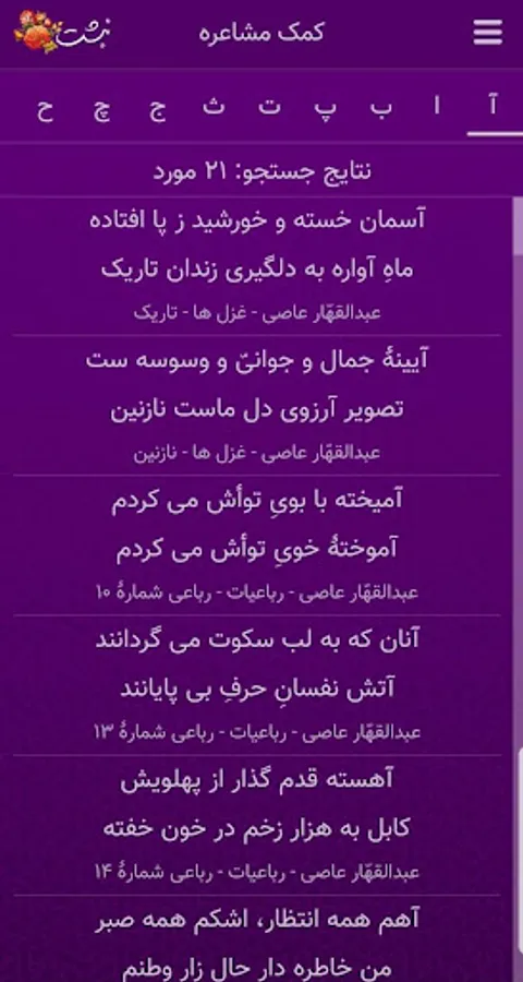-The ability to display poems according to the letter of the beginning of the verses titled "Help boobs"