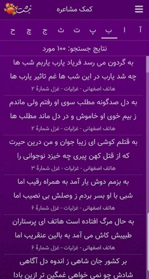-The ability to display poems according to the letter of the beginning of the verses titled "Help boobs"