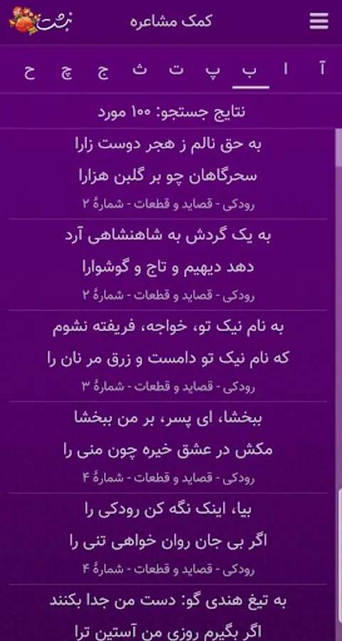 -The ability to display poems according to the letter of the beginning of the verses titled "Help boobs"