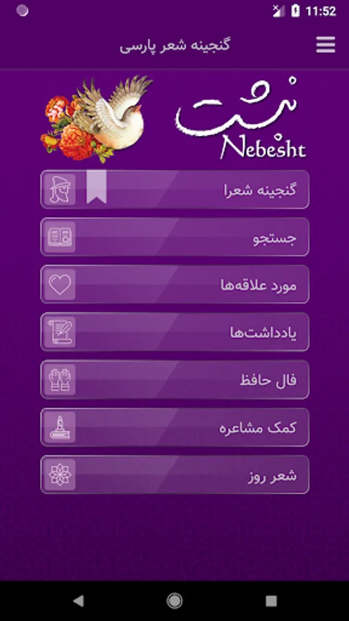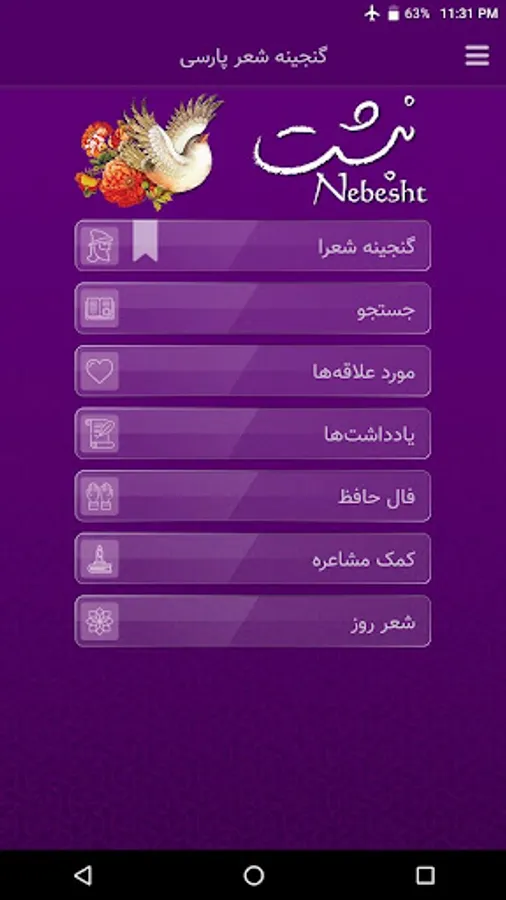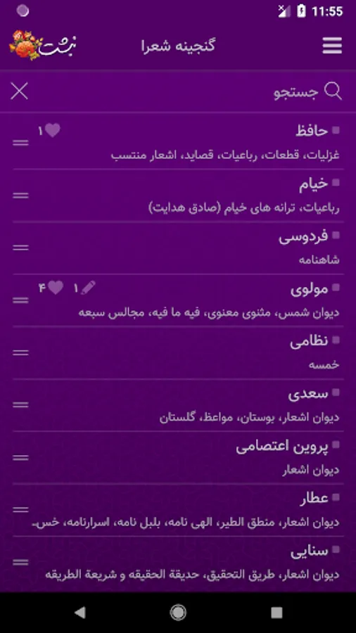 Writing a valuable treasure trove of poems by Iranian poets, including the works of 77 poets from ancient to contemporary poets with more than one million verses that are presented completely free of charge to all lovers of Persian literature.