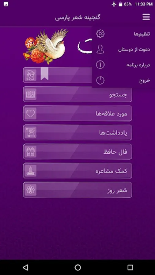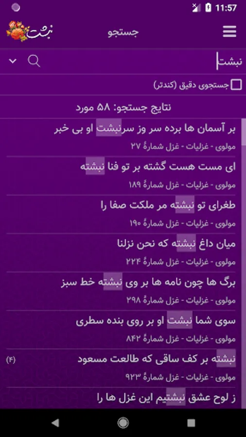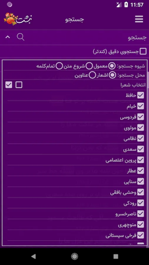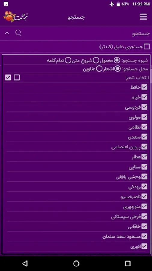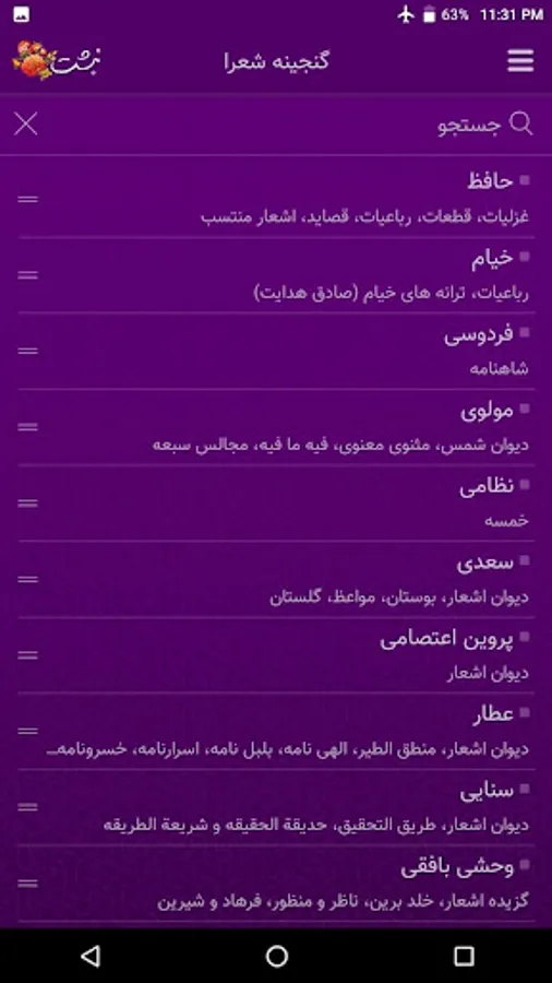 - Ability to search all poems or limit the search range based on poets independently and in combination