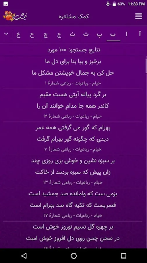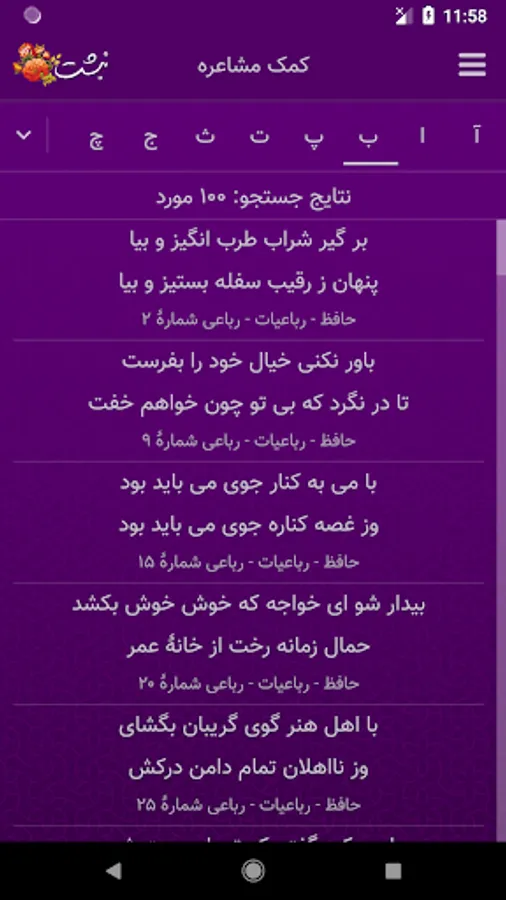 - Ability to display poems according to the beginning of the verses with the possibility of determining the scope of display of poets as the help of poetry
