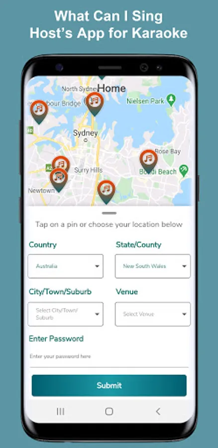 What Can I Sing (WCIS) is an on-demand App for Karaoke requests. The user interface allows patrons to find nearby venues via geo location map and see the hours of operation for Karaoke in each venue. Whatcanising will allow patrons to view the host’s songbook and make requests. Patrons can include a key change request and also see a list of their requests. This list will show if the host has accepted or rejected the request. The Patron can also receive a notification to tell them it is their turn next.