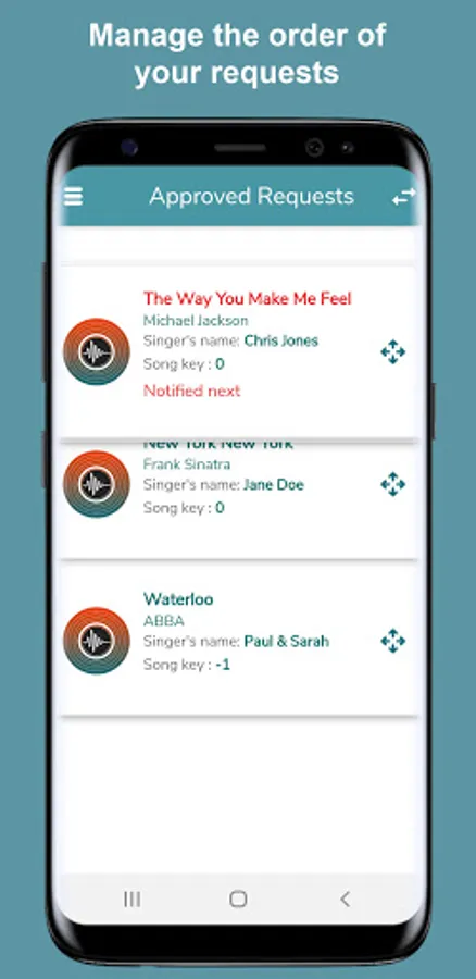 The host interface receives the requests and allows the host to manage the order and send the notifications to the patrons. This will eliminate the need for the host to collect paper requests and refine them into order. Often the writing on these paper requests can be hard to read especially in darker environments. The App will solve this issue. The App will also eliminate the need for patrons to go searching for a songbook or waiting for one to become available.