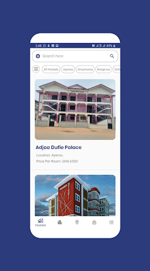 Users can search for any location or hostel.