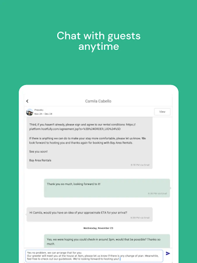 - Inbox and Messenger: Stay in touch with your guests via email or the listing site's native messenger system. Template responses to common inquiries at your fingertips.