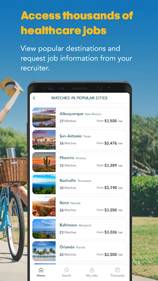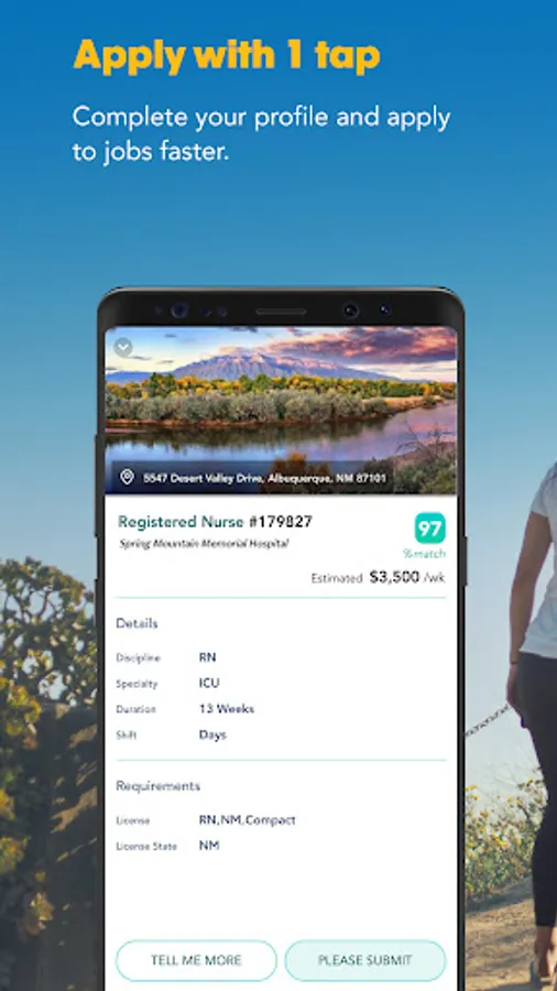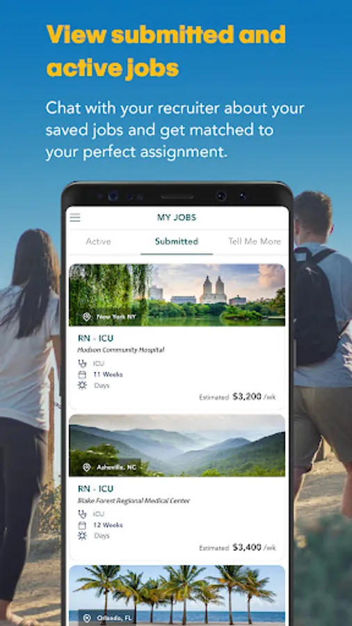 Instantly search jobs by pay estimate, location or shift. View all the information you need to find your perfect travel healthcare job and apply with just one tap.