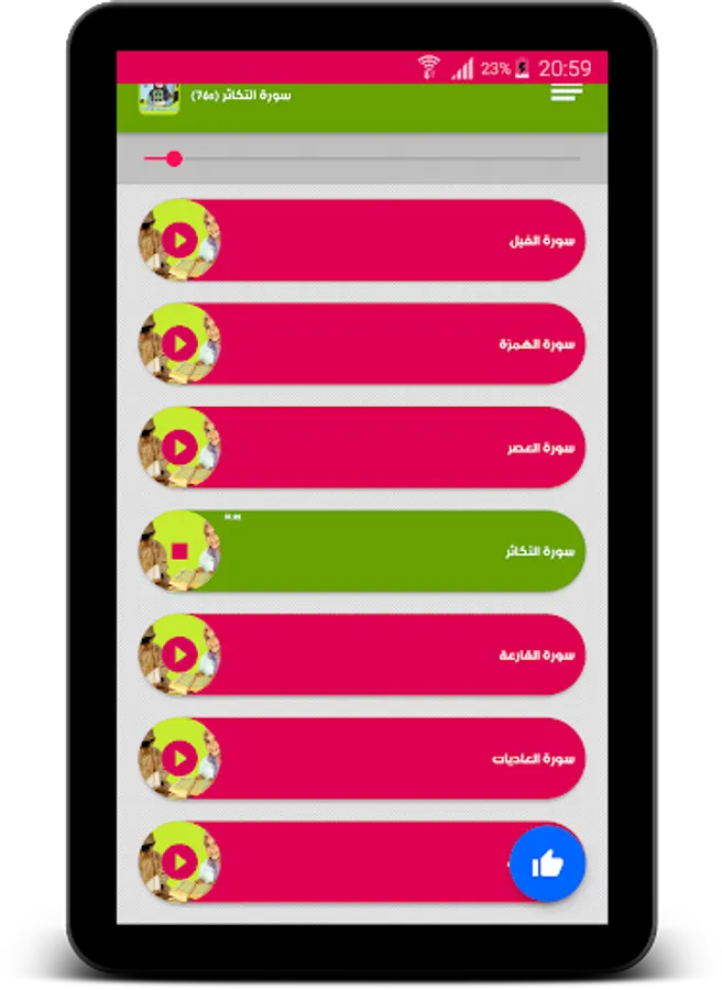 Juz Amma application helps mothers and fathers to teach the Koran in an easy way and high quality voice without the need to connect to the Internet.