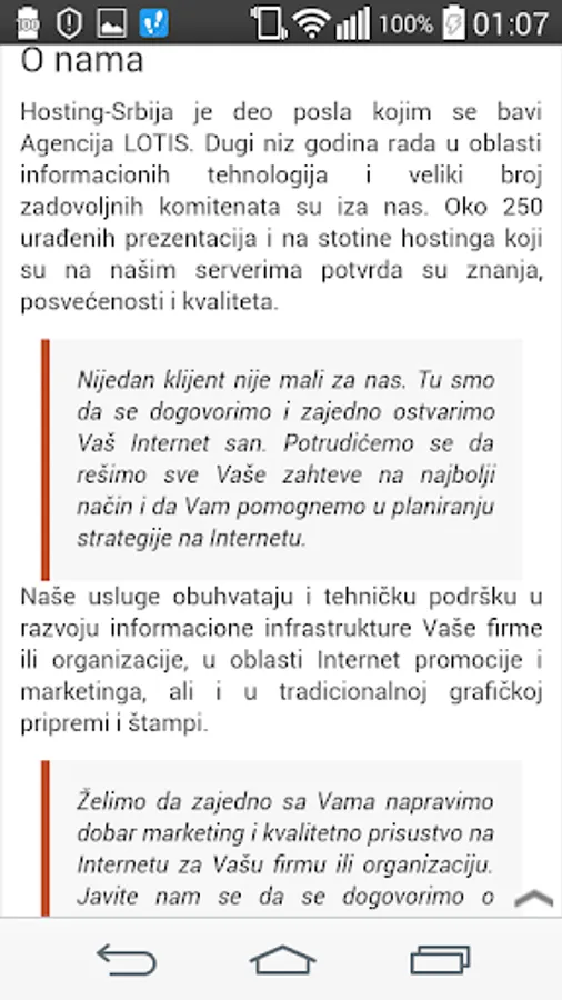 Hosting-Serbia is part of the work covered by the Agency Lotis. For many years in the field of information technology and a large number of satisfied customers behind us. Hundreds performed presentations and hundreds of hosting that are on our servers are testament to the skills, commitment and quality.