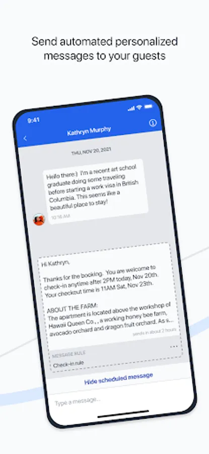 - Send automated customized messages via the channel's messaging system. Your guests will never know your messages are automated.