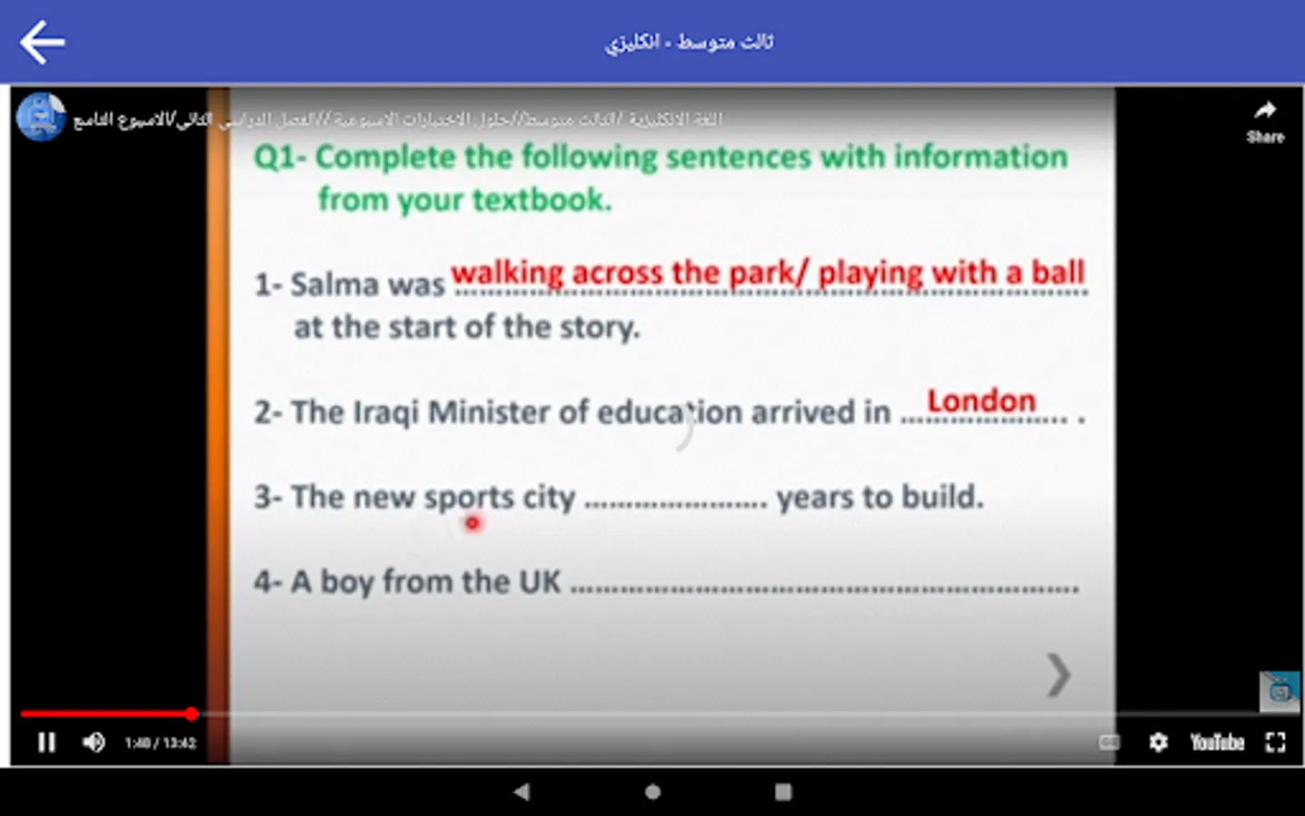 The application of lessons for Iraqi students provides you with educational videos for the academic stages below:
