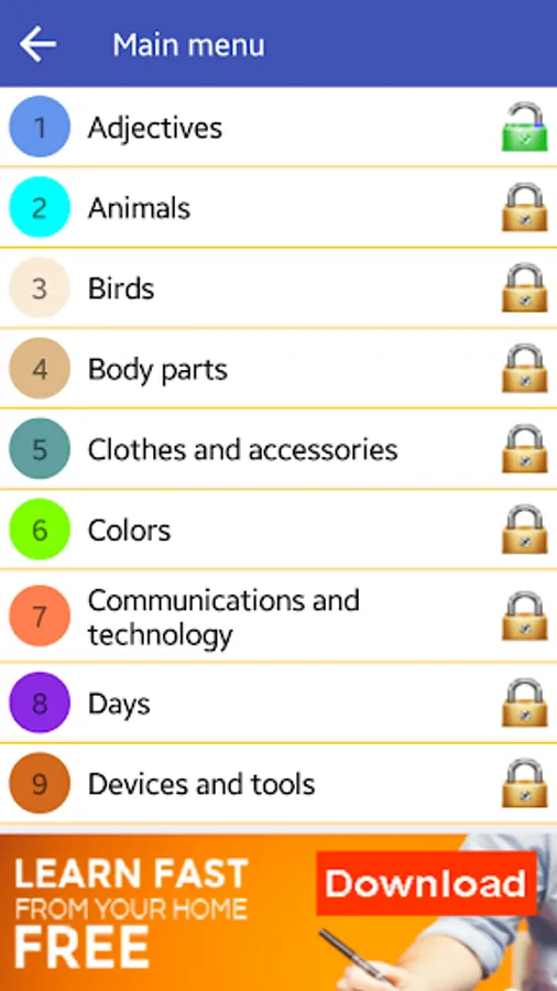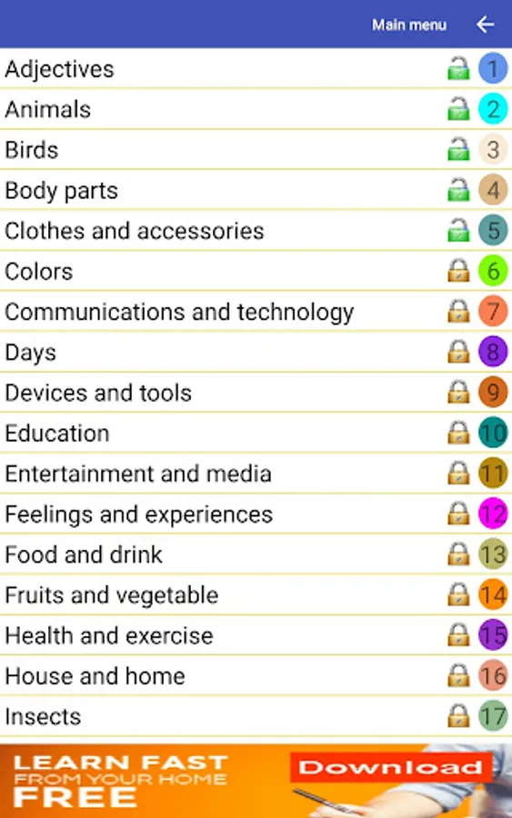 - Fun game with 27 fantastic categories including animals, countries, food, etc.