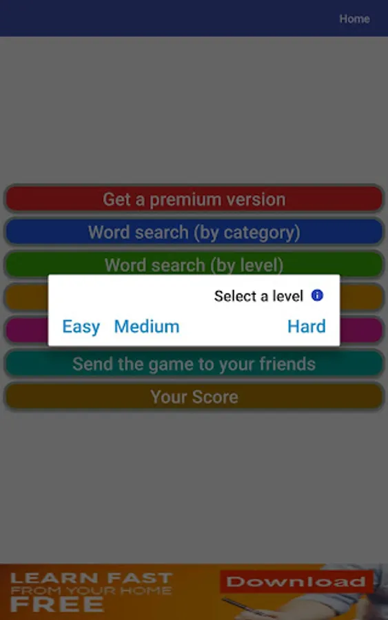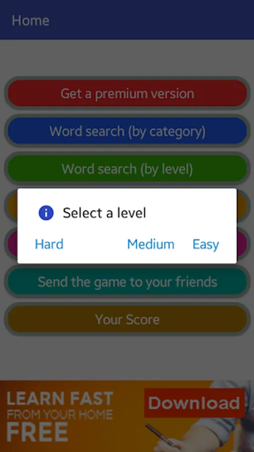 - Three different levels: easy, medium, and Hard.