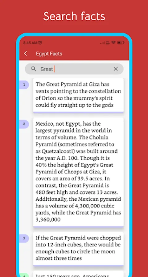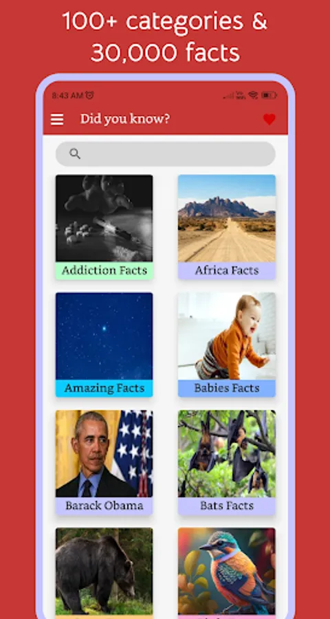 Explore an Extensive Fact Database: Immerse yourself in an ever-growing collection of incredible facts spanning various categories. From science and history to nature and pop culture, FactMaster covers a wide range of topics, ensuring there's something awe-inspiring for everyone.