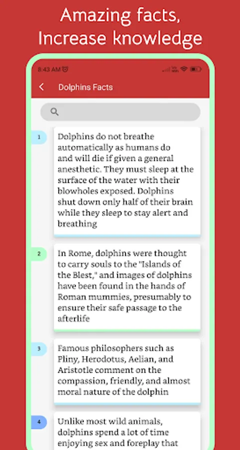 Random Fact Generator: Need an instant dose of amazement? Shake your device or tap the "Random Fact" button, and FactMaster will surprise you with a fascinating fact from its vast database. Expand your mind and be amazed by the wonders of the world, one fact at a time.