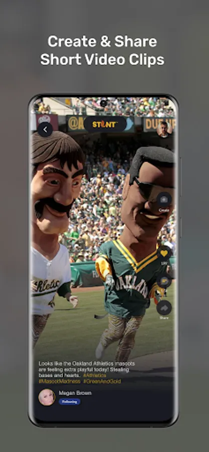 The Stunt makes you a content creator with a suite of content creation tools designed specifically for the sports fan. Add special effects, filters, music, and more to your videos. Showcase your sports knowledge and passion, and grow your audience.
