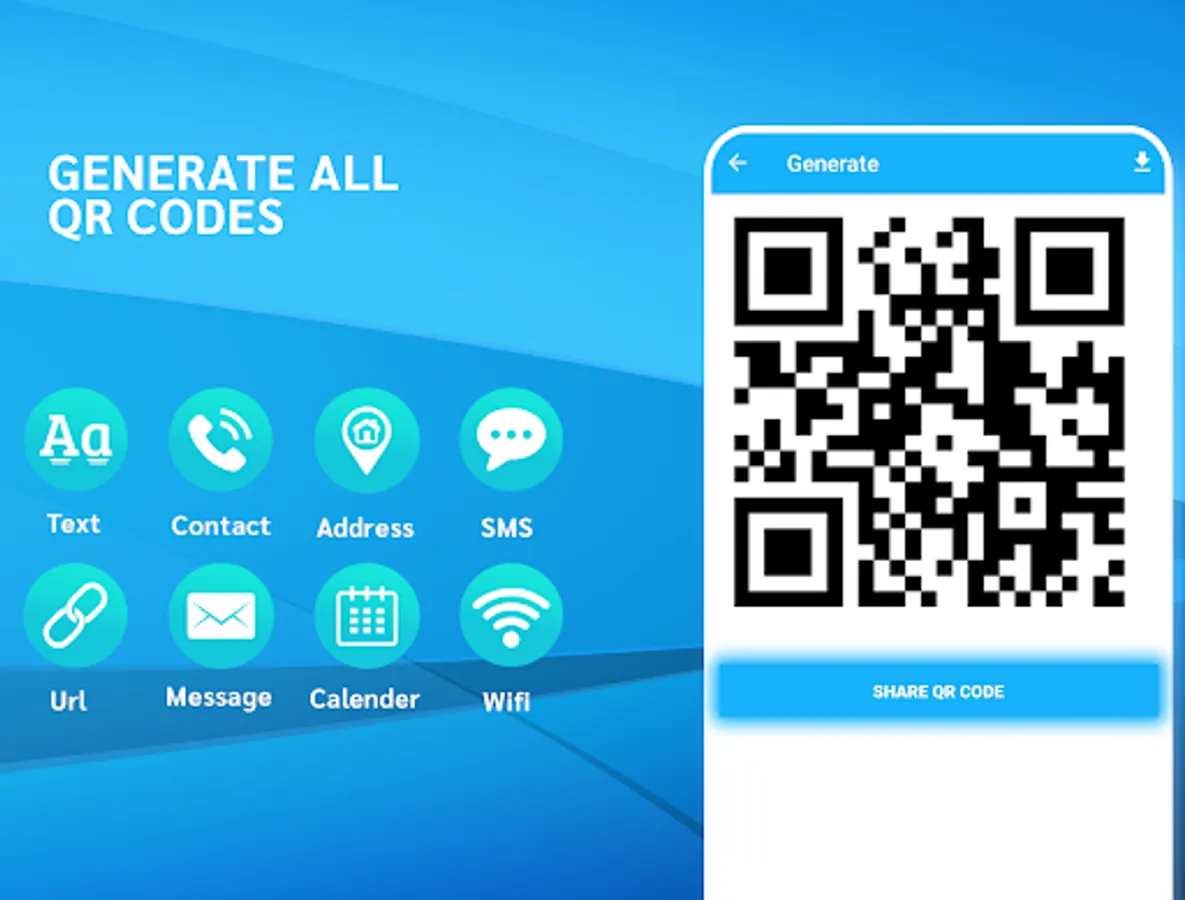 you can create and generate own QR Codes and Barcodes and share with your friends via social networks, email, text messages. You can also save them for later use or print.