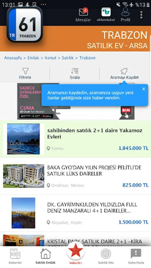 Property for sale and rental in Trabzon, job postings of companies looking for cars and employees for sale, and the most suitable flight and bus ticket deals. The latest campaigns in food services and opportunities from e-commerce sites selling local products.