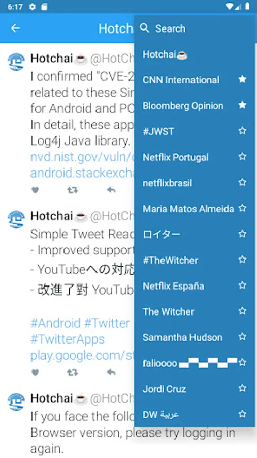 When you touch the author's name or icon, "User Timeline" is displayed.