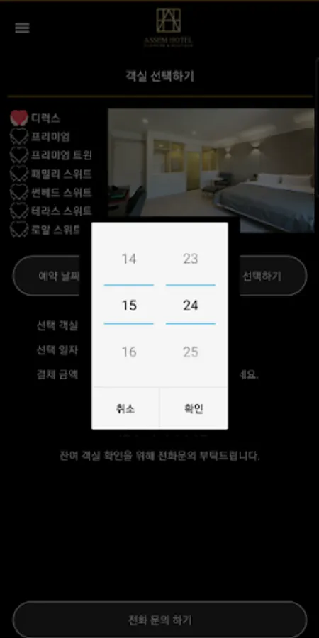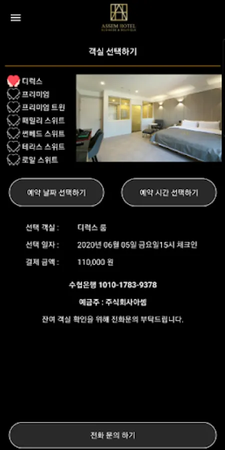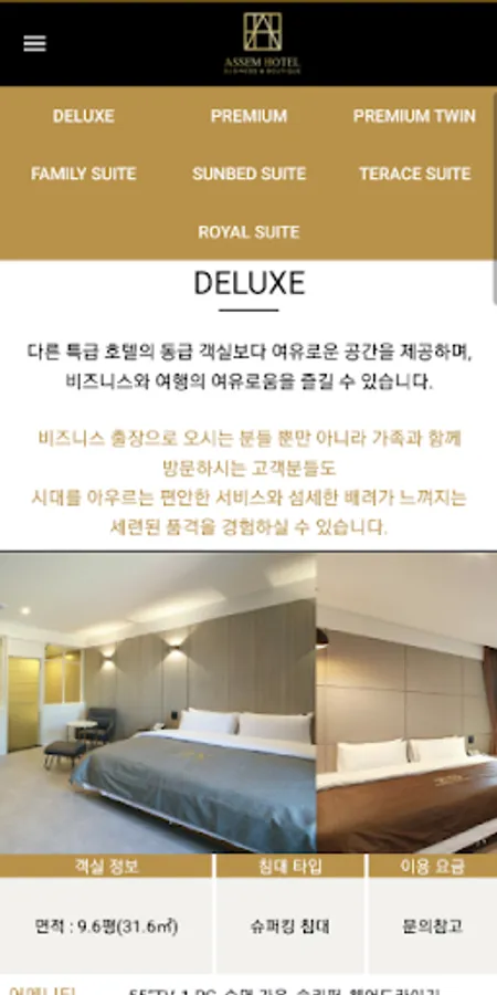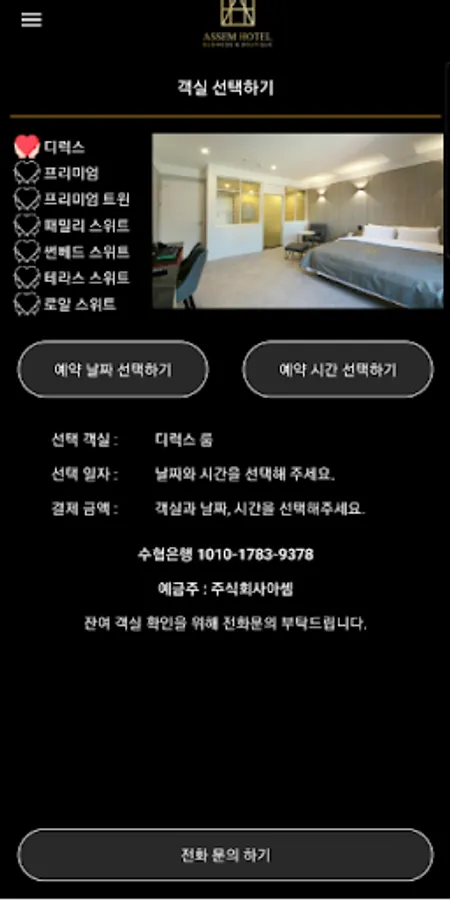 Information on the rooms provided by Asem Hotel located in Gigi-dong, Gimpo
