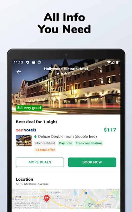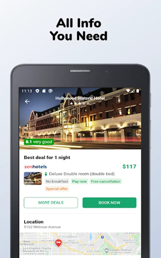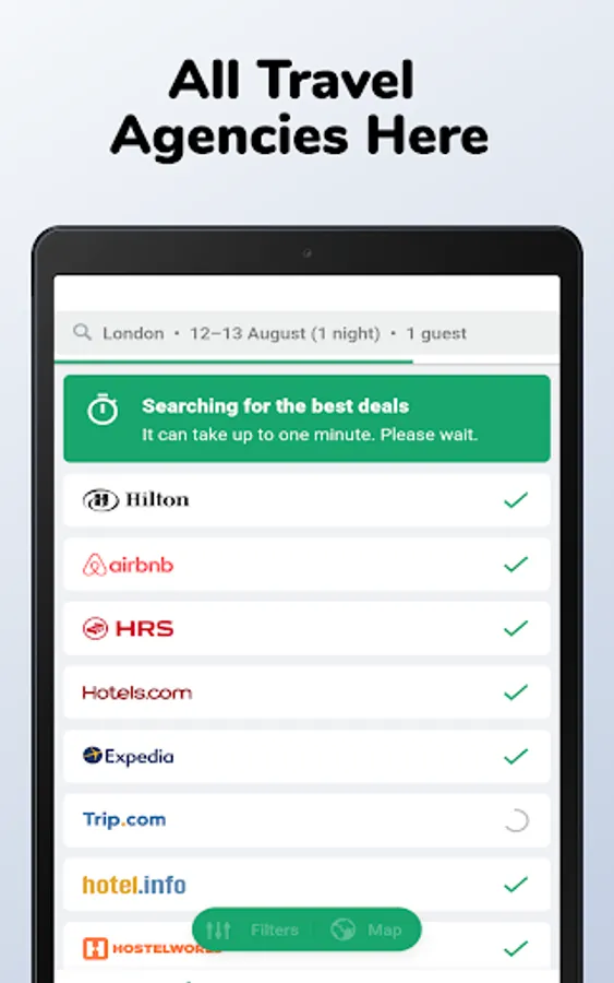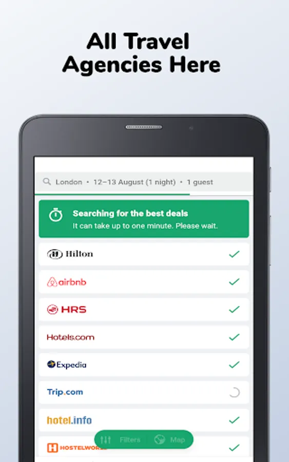 You can search hotels by name, or you can compare hotels in your location using our app. Our comparison service is entirely free of cost. We cover almost all the major hotel providers to ensure our users are provided with all available deals in hotel booking. We offer last minute hotel booking also. So without any confusion, you can plan your travel even at the lastminute.
