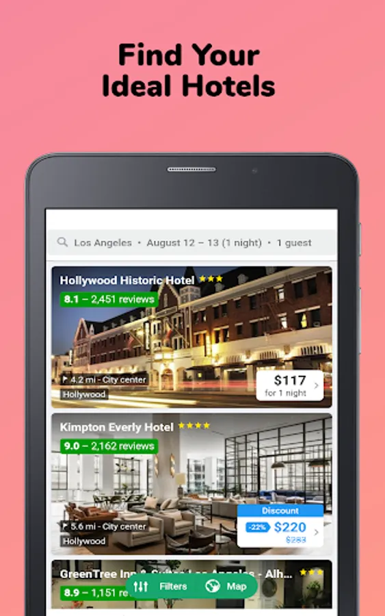 We help to search & compare hotels from all main hotel providers and hotel booking websites to get one with great deals. You can easily find cheap hotels, discount hotels & offers, last minute hotel deals, etc. with us. You can experience a new way of hotel booking with the Discount Hotel Booking app.