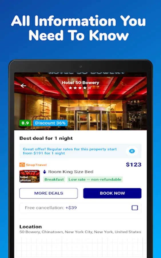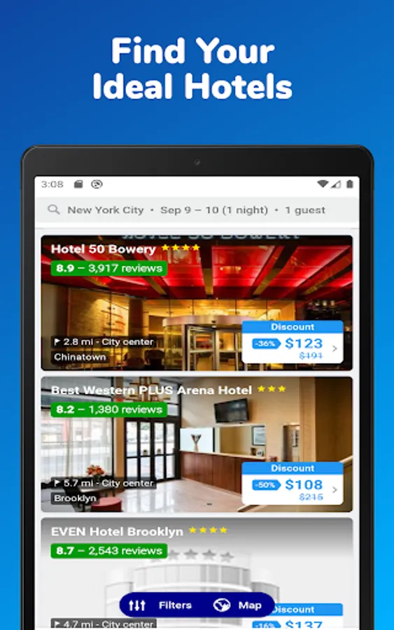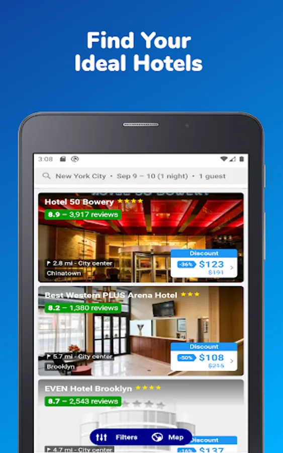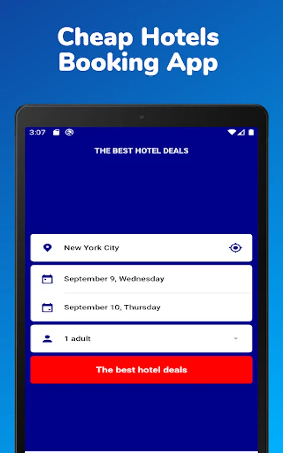 If you're facing trouble finding cheap hotels in your destination, use hotels near me option from our app to get the best cheap hotels booking deals. Book your hotels, motels, villas, apartments, vacation rentals, hostels, resorts, weekly hotels, extended stays, holiday homes, luxury hotels, etc. from our cheap hotel booking app. Get the latest last minute hotel booking deals with us.