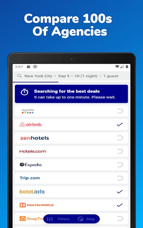 "Cheap Hotels - Hotel Deals" is one of the best apps to find cheap hotel deals worldwide. Search & compare the best hotel deals & hotel discounts from our partners. We are affiliated with major online hotel booking apps like Agoda, booking com, Hotelscombined, Priceline, Airbnb, Orbitz, Choice Hotels, Hotwire, Trivago, Travelocity, Hotellook, My6(Motel6), Vrbo vacation rentals, Lastminute, HomeAway Holiday Rentals, Expedia, Tripadvisor, Hotels.com, etc. Find your best budget, low cost, & cheap hotels booking deals with us. Also, help to find the latest last minute hotel deals & discount.