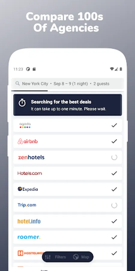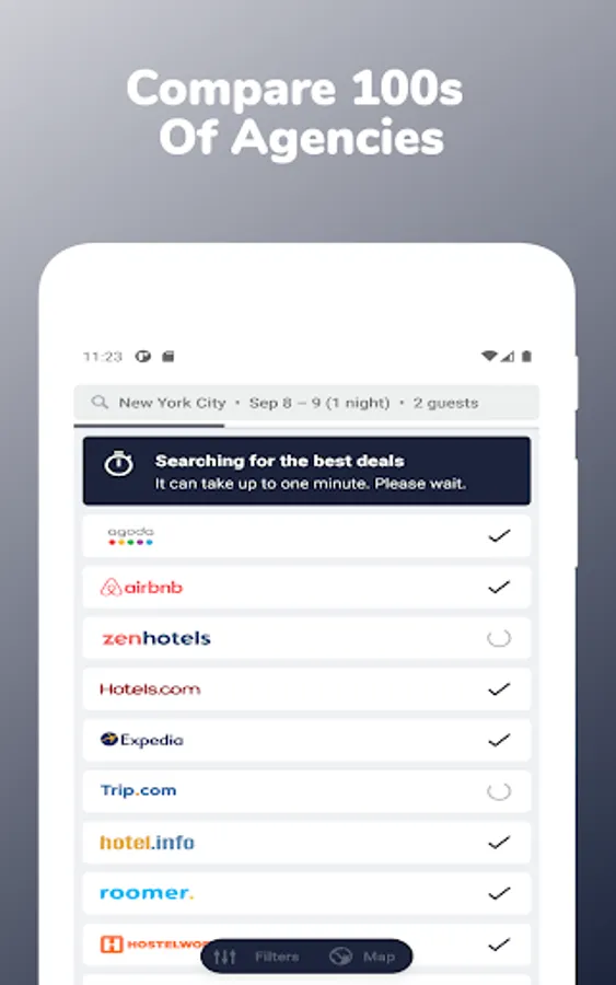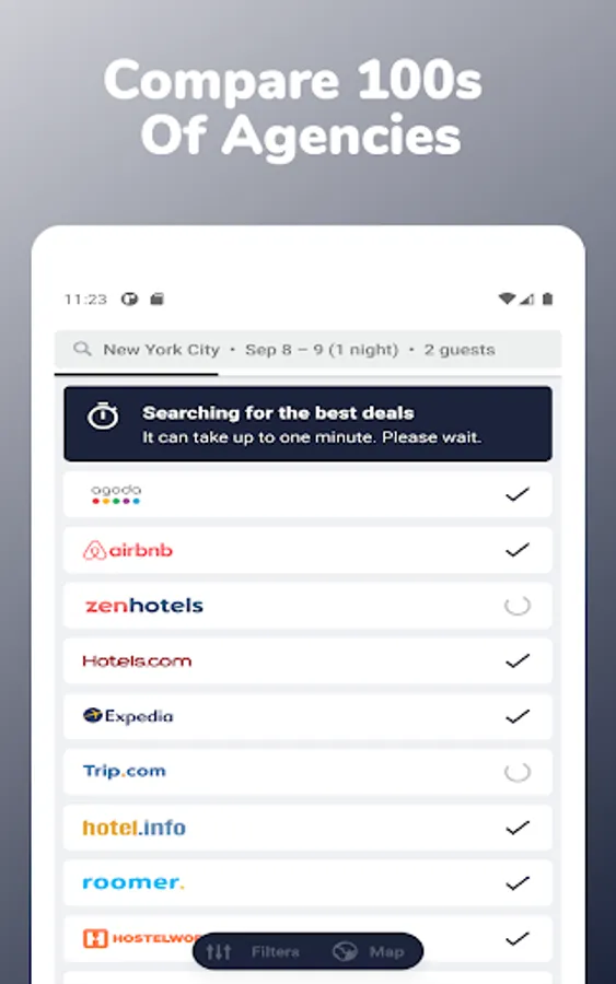 Cheap Hotels Near Me app is one of the best apps to find nearby hotels in your location. Search & compare each hotel in your destination from multiple hotel booking providers to get the best deals & discounts in cheap hotels booking. Find your budget, lowcost & cheap hotels worldwide with us. Also, quickly discover the latest last minute hotel deals & offers in cheap hotel booking. We compare from major hotel providers like Booking com, Priceline, Airbnb, Vrbo vacation rentals, Hoteltonight, Hotwire, Agoda, Expedia, Tripadvisor, Travelocity, Trivago, Hotels com, etc. Cheap Hotels Near Me app helps to find the perfect accommodation in your destination.