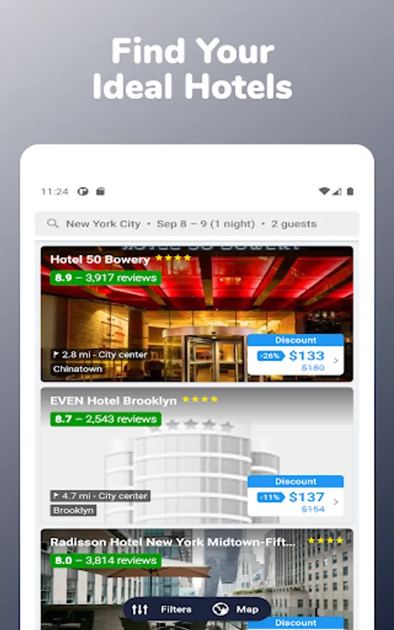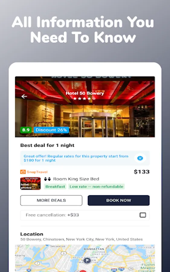 Download the Cheap Hotels Near Me app and travel anywhere. Hotel booking is made simple with us.
