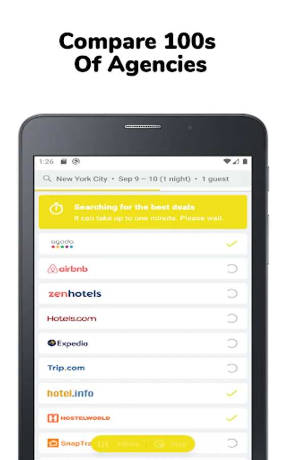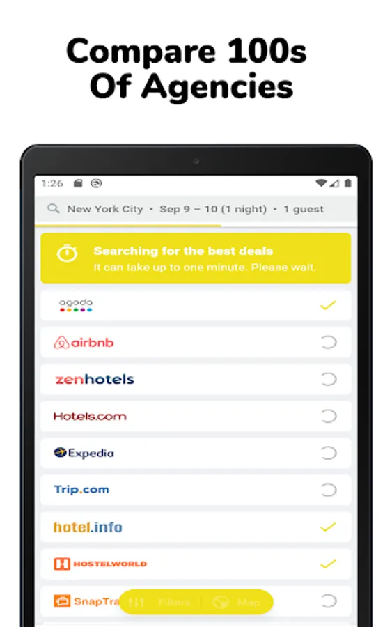 Weekly Hotels Booking - Extended Stay Hotel app helps you to compare weekly hotel deals from different online hotel booking apps worldwide. We offer cheap weekly hotels from the best hotel booking websites like booking com, ESA(Extended Stay America), Hometogo, Agoda, Airbnb, Dayuse, Roomscanner, Expedia, Bag2Bag, Tripadvisor, Sublet, Choice Hotels, Hotels.com, Nestpick, Hotwire, Motel6(My6), Priceline com, etc. Get the best deals, offer and discount on your Weekly Hotel Booking & make your travel budget-friendly.