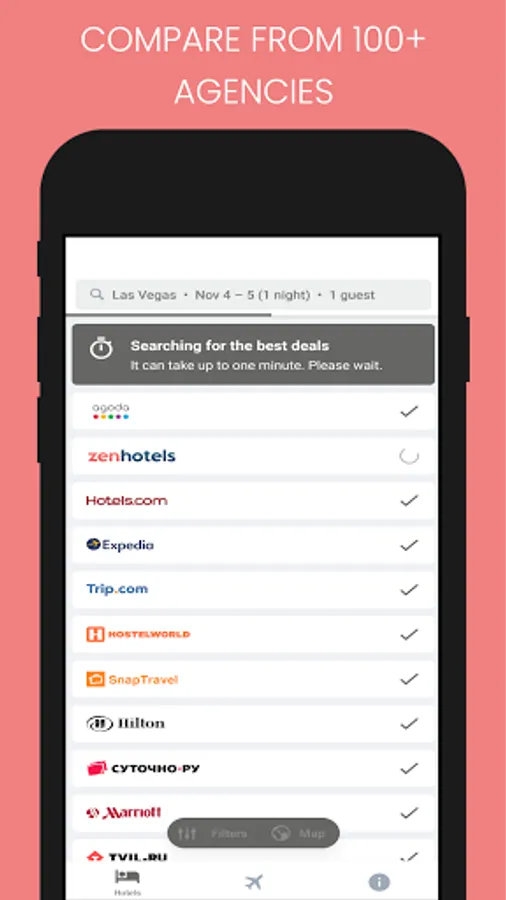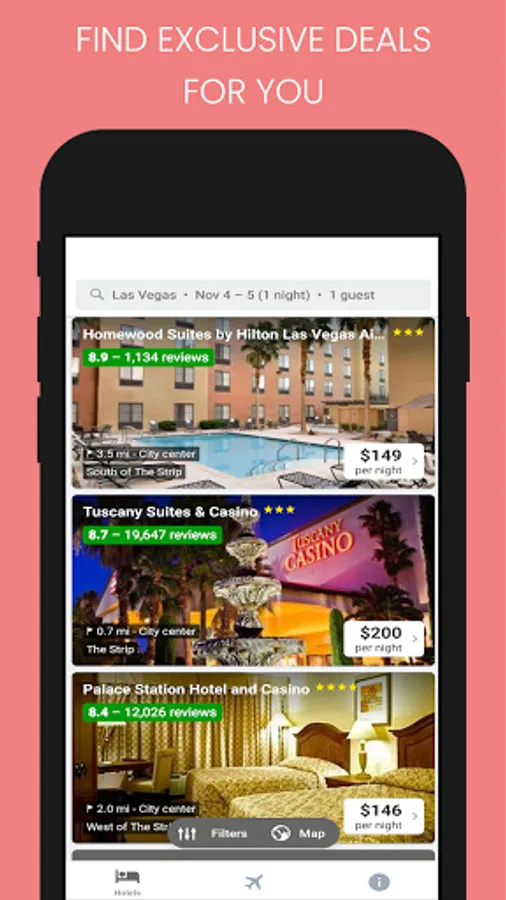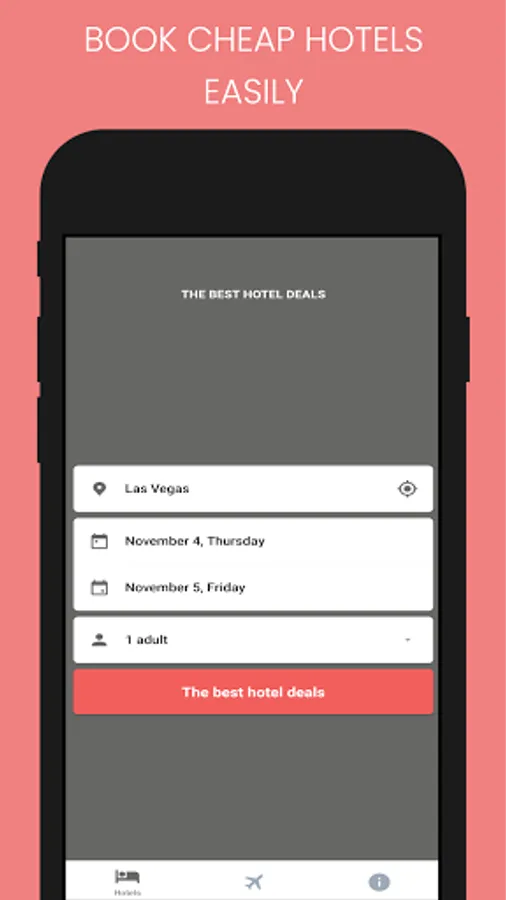 Hotel deals app - We deliver you the best hotel price comparison result, and you can even book last-minute hotels with savings and discounts. We compare hotel rates from popular hotel booking providers all over the world. And also help you find exclusive and secret reservation deals that ensure you the best price. So the agencies that we are working with are Agoda, booking com, priceline, kayak, Airbnb, hotelscombiend, ihg, expedia, tripadvisor, hotwire, hotelstonight, hotellook, lastminute and many more in this list. Find the best cheap hotels even for your last minute hotel booking.