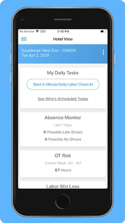 Land into a hotel view and get a snapshot of what is happening with your property along with daily tasks. When managing multiple hotels, you’ll have a snapshot of labor win/loss by hotel.