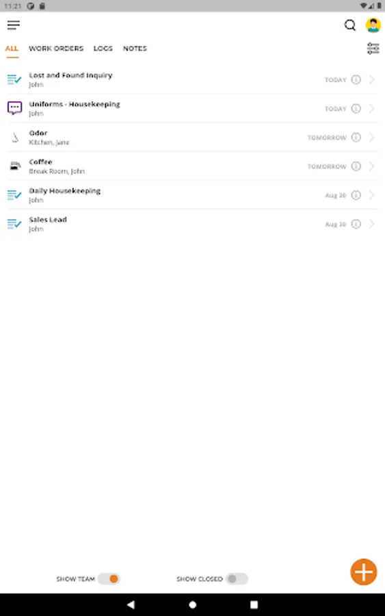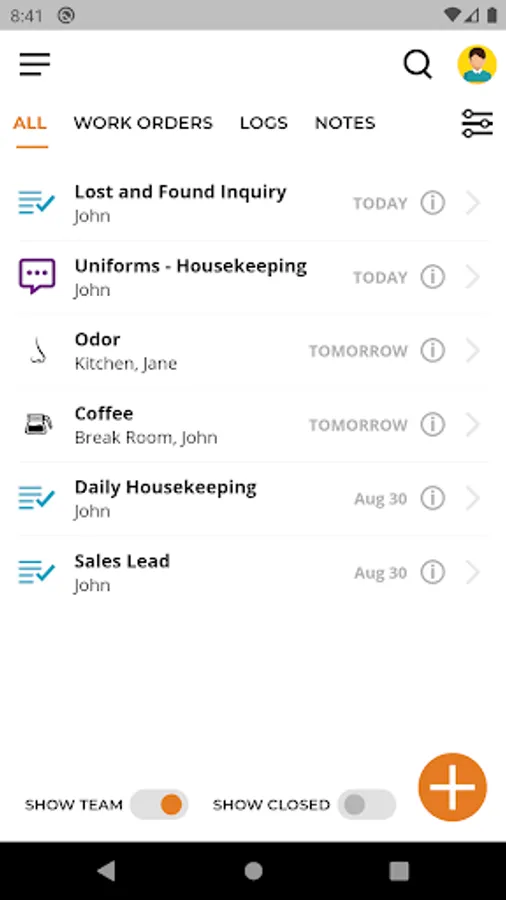- One-tap functionality to quickly open Work Orders and Tasks that sends immediate notification to assigned staff members