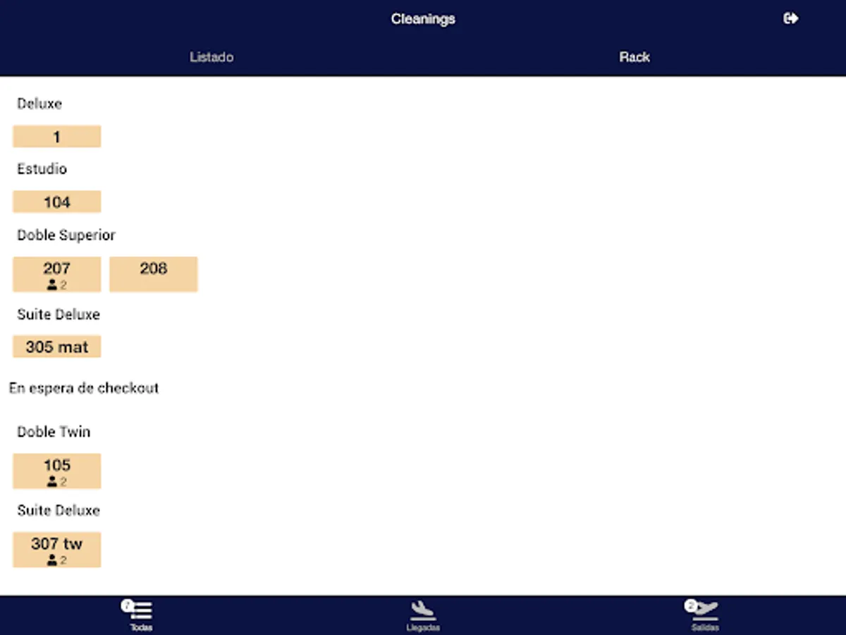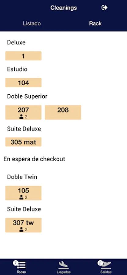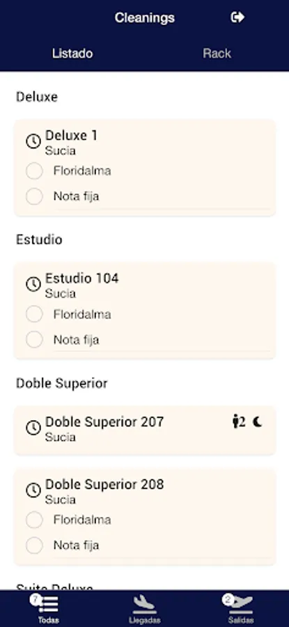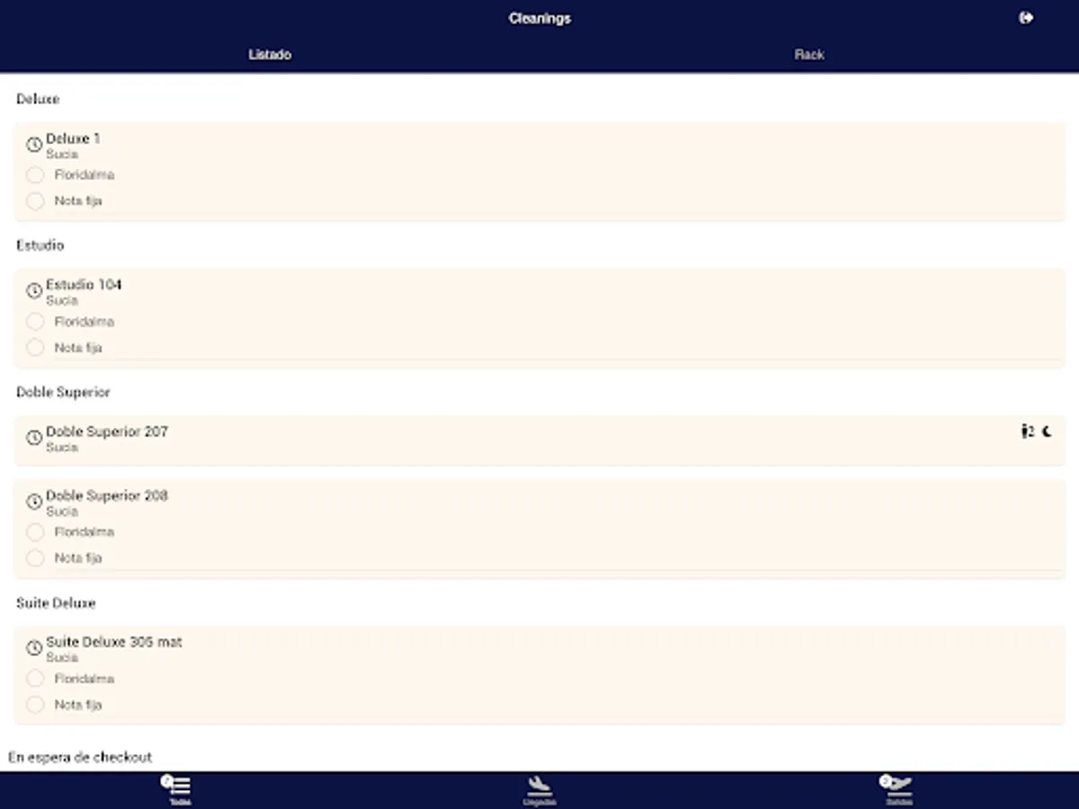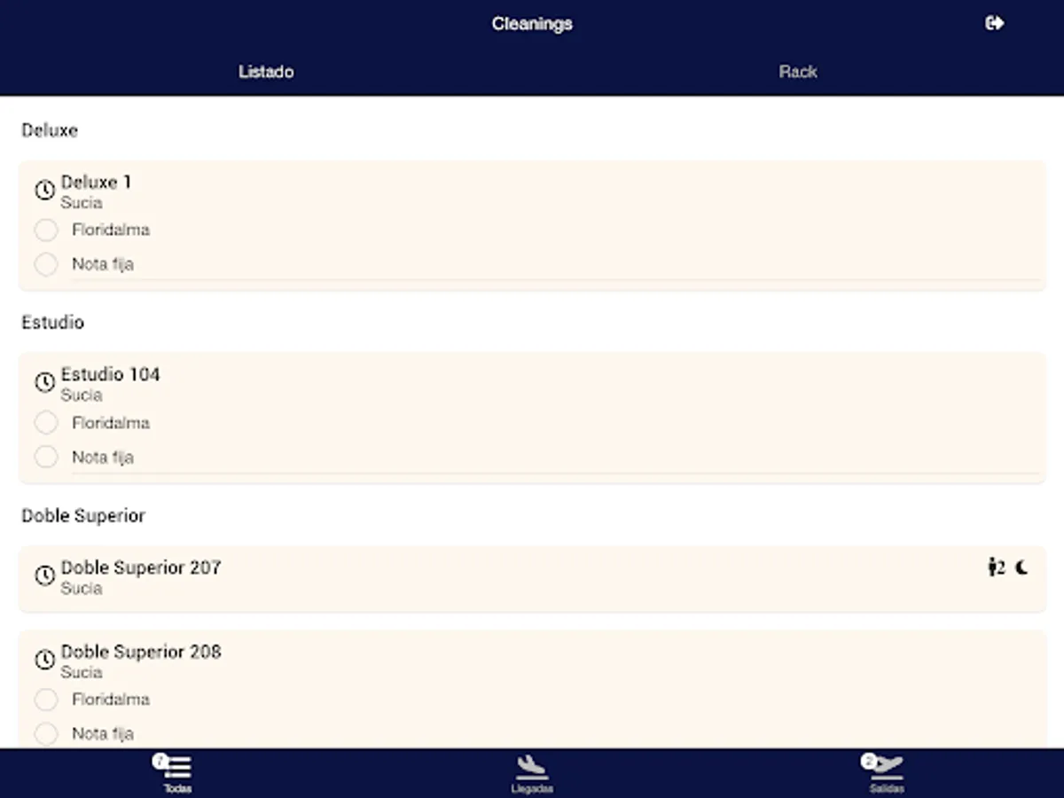 Stay up-to-date on cleaning in rack view formats and list with filters for arrivals, departures and more.