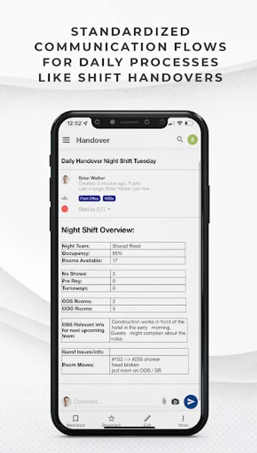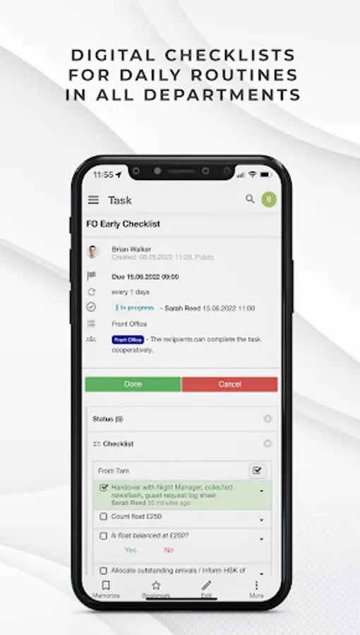The app helps to run the daily operations at every individual hotel and further enables collaboration on a cross-property level. With the App you can collaborate efficiently with the help of digital checklists, shift handovers and tasks, easily manage repairs and walkthroughs, streamline housekeeping processes, centrally document all brand standards and financial policies and stay up to date anywhere on any device.